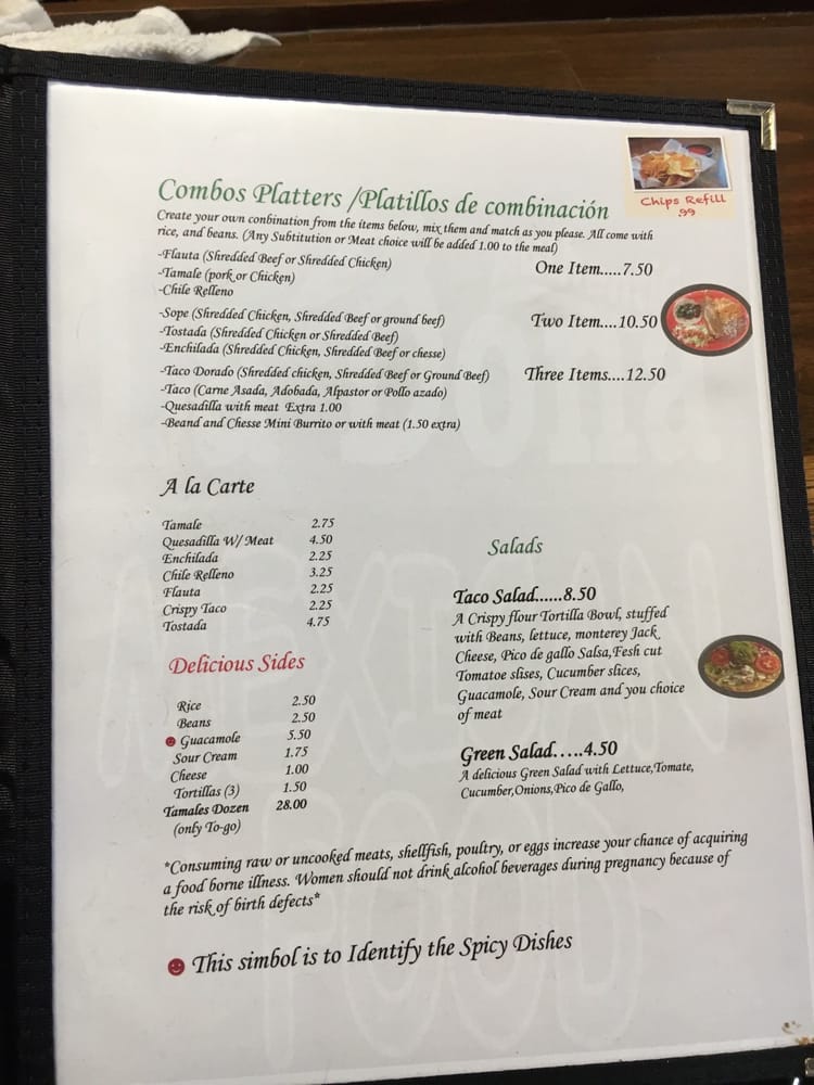 Create your own conbination from the tems below, mix them and match as you please. All come with rice, and beans.