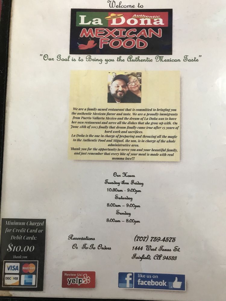 La Dona stands out as a vibrant Mexican breakfast and brunch destination in Fairfield, CA. Catering to all tastes, its menu highlights authentic and flavorful dishes that capture the heart of Mexican cuisine. Begin your day with their delightful Chilaquiles, where crunchy tortilla chips meet a zesty homemade sauce, or dive into the Machaca Breakfast, featuring savory shredded beef mixed with scrambled eggs. Indulge further with their rich Burritos, loaded with your choice of meats, fresh ingredients, and topped with red sauce and guacamole.